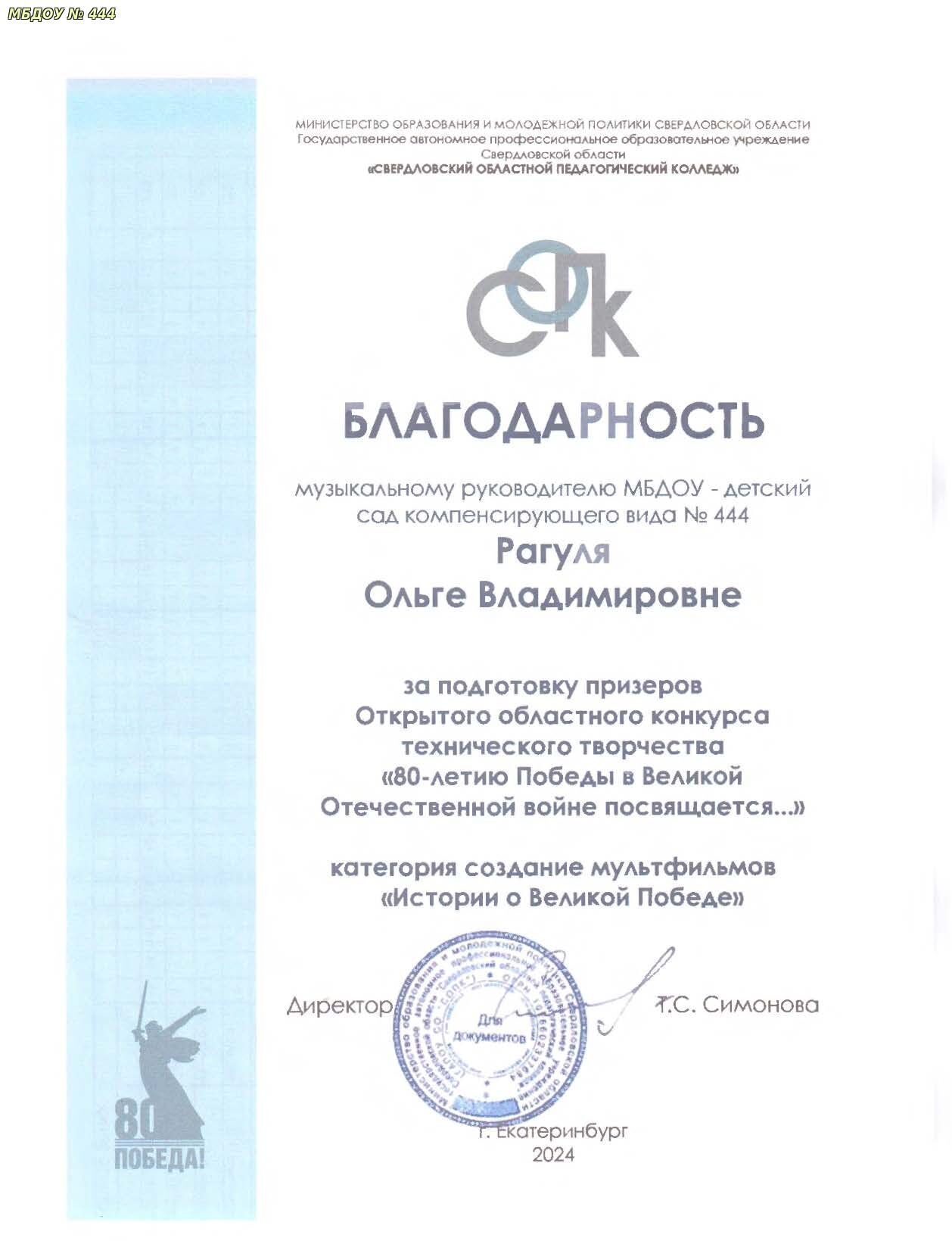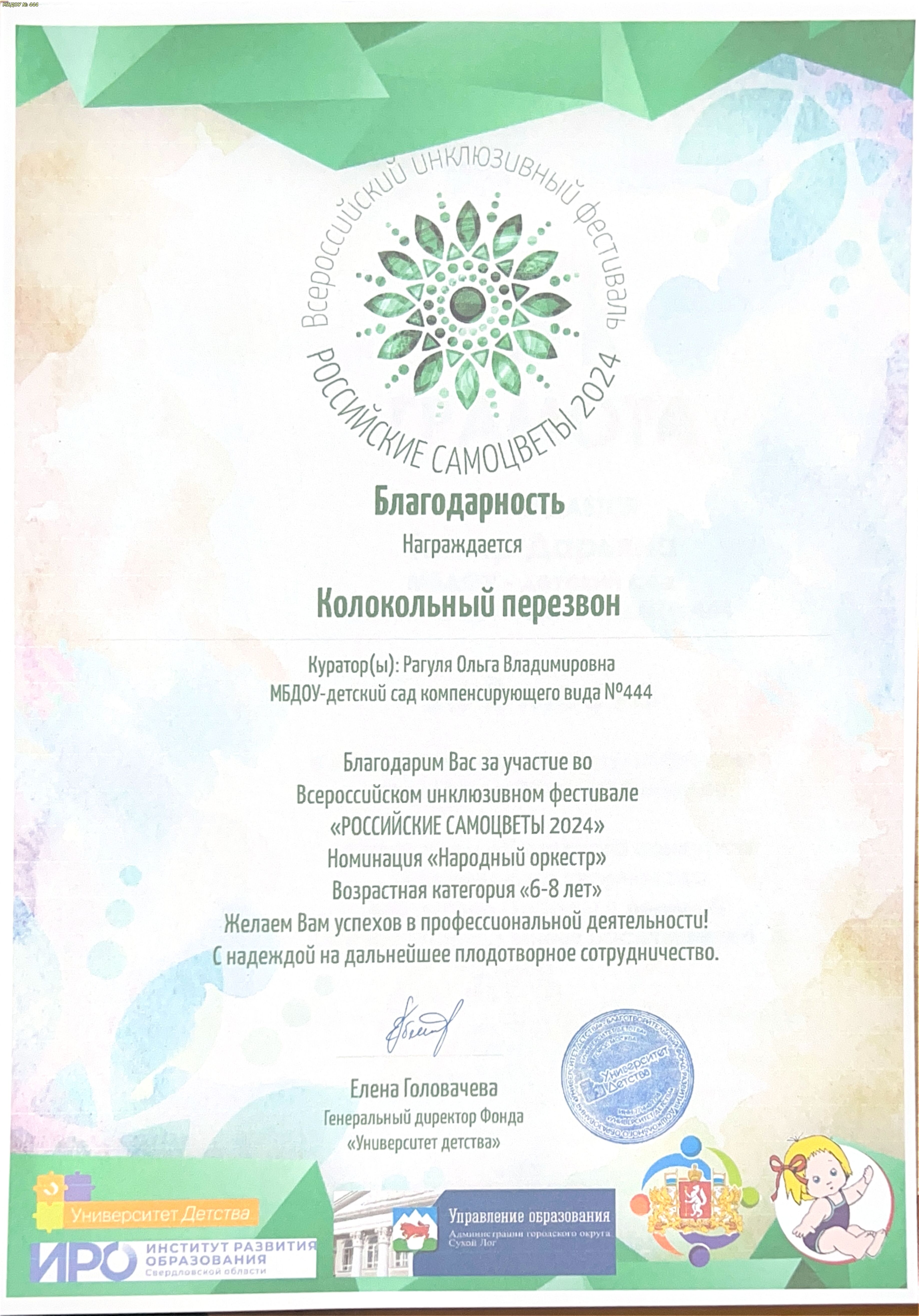 2023 год, МБУ ИМЦ "Екатеринбургский Дом Учителя" по дополнительной профессиональной программе "МКДО: опережающие шаги от базового к превосходному качеству", 24 часа.